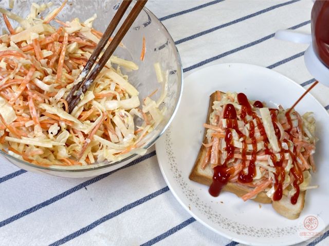 식빵 위에 샐러드 듬뿍 올리고