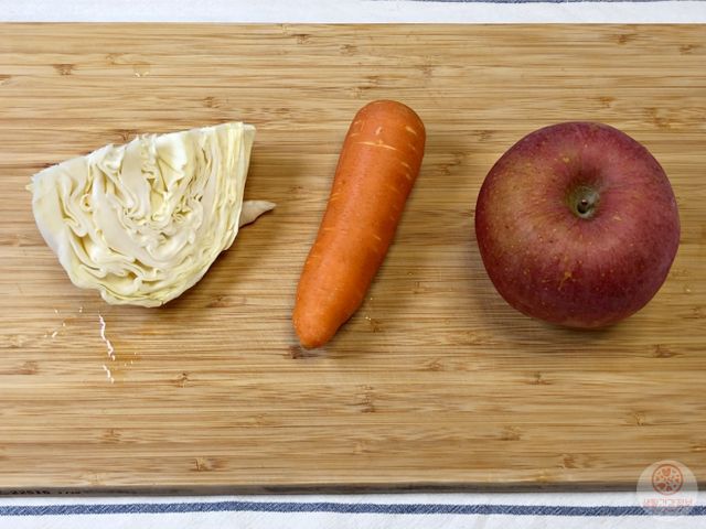 양배추, 당근, 사과를 깨끗하게 씻어서