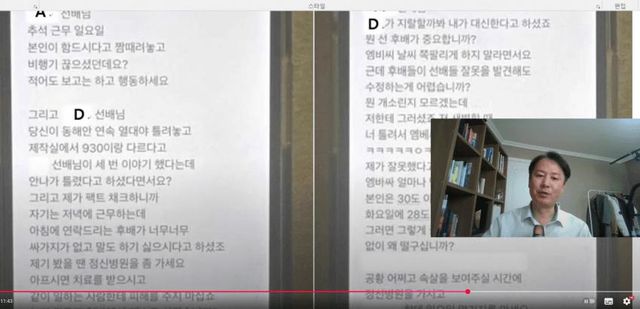 하지만 같은날 오요안나가 선배에게 받은 카톡 내용