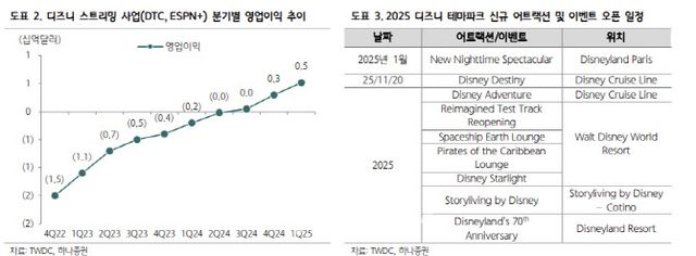 다만 이지수 연구원은 “2027회계연도까지 이어질 장기 성장 모멘텀에 주목해야 한다”며 “디즈니는 2025회계연도에 EPS 증가율 가이던스를 높은 한 자릿수로 유지했고, EPS는 5.32~5.42달러로 예상된다. 2026회계연도와 2027회계연도 EPS는 전년 대비 두 자릿수 성장률 가이던스를 유지했다”고 분석했다.