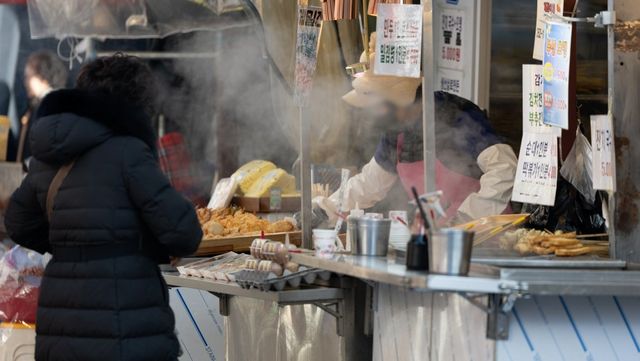 서울 중구 남대문시장을 찾은 시민이 분식을 먹고 있다. / 뉴스1