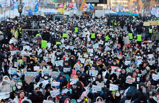 같은 날 오후 3시 헌재 인근인 안국역에서는 촛불행동 주최의 탄핵찬성 집회가 열렸다. 김은진 촛불행동 공동대표는 “정치권에서는 국민의힘이, 거리에서는 전광훈 일당이 서부지법 폭동도 모자라 연일 헌재를 협박하고 공격을 선동하고 있다”고 꼬집었다. 이어 “그들은 이미 탄핵 불복의 명분을 조성하고 있다”고 부연했다.