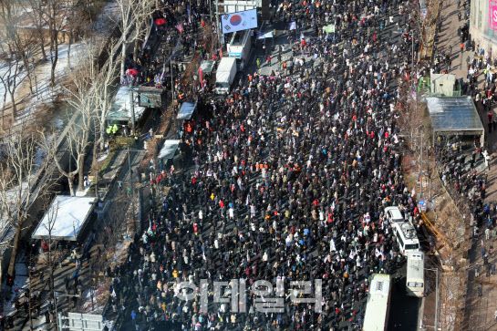 광화문에서 대한문까지 약 700m 거리의 모든 차선도 차량 접근이 막혔다. 전광훈 사랑제일교회 목사가 이끄는 자유통일당 등이 광화문에서 탄핵 반대 집회를 신고했기 때문이다. 차량이 다니지 않은 도로는 집회 참가자들이 채웠다.