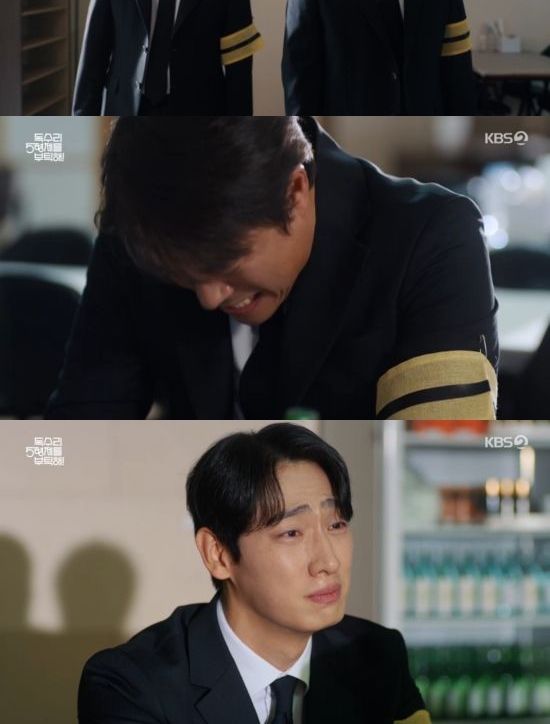 8일 방송된 KBS 2TV 새 주말드라마 '독수리 5형제를 부탁해' 3회에서는 마광숙(엄지원 분)이 오장수(이필모)의 장례식장에서 오열하는 모습이 그려졌다.