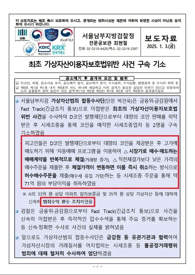 이걸로 거래량 부풀리고 시세조종한 범죄자들 잡아서 약 70억원치 환수함