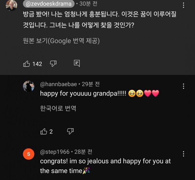 아이유 팬이시고 2주전 유튜브 개설하시고 아이유 관련 리액션 영상 여러 개 올리다가 아이유가 이를 확인하고 미국 콘서트 초대함.