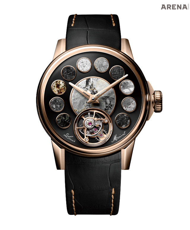 천체의 움직임과 연관된 도구가 시계인 만큼 우주 관련 콘셉트를 적용한 시계는 아주 많지만, 우주를 이 정도로 담아낸 시계는 없다. 마블, 스타워즈 협업을 통해서도 잘 알려진 홍콩의 시계 브랜드 메모리진은 하나의 시계에 운석을 12개 삽입하여 새로운 기네스 세계 기록을 달성했다. ‘코스믹 워치’라는 이름의 시계로, 소행성이나 혜성, 혹은 달이나 화성 등 다양한 천체의 일부에서 떨어진 각기 다른 12종의 운석을 담았고, 5N 18캐럿 로즈 골드로 제작된 40mm 케이스로 이를 감쌌다. 각 운석 조각이 지닌 고유한 색감과 무늬는 우주의 신비로움을 보여주며 고급스러운 디자인과 아름답게 조화를 이룬다. 특별한 콘셉트 때문에 시계 애호가뿐 아니라 우주 과학과 천문학에 관심 있는 이들에게도 화제가 됐다.