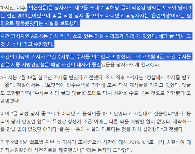결론은 봉급의가 심심풀이로 쓴 ’11년도에 쓴 야설을 19년에 공보닷컴에 올려서 어그로 오지게 끌린거