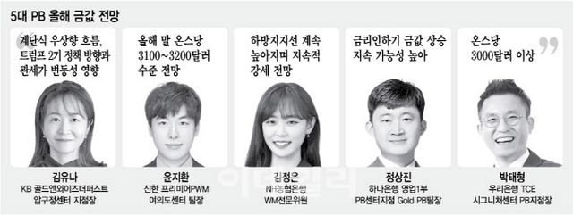 김유나 KB골드앤와이즈더퍼스트 압구정센터 지점장은 “올해 글로벌 변동성에 큰 요인 중 하나가 트럼프 2기 정책 방향과 관세 영향”이라며 “멕시코와 캐나다 사례처럼 시장이 흔들릴 때마다 안전자산 선호로 금값에 영향을 주며 계단식 우상향 흐름이 이어질 것”이라고 말했다.