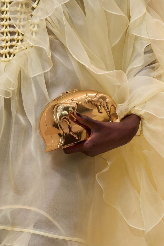 금빛의 향연이다. 가볍게 들기 좋은 미니 사이즈 백이 골드 컬러로 물들었다. 발망은 실제 같은 향수 병 모티프 백으로 위트를 더했는가 하면, 끌로에는 조개와 소라를 모티프로 한 골드 메탈 백으로 빈티지 무드를 강조했다. 라반은 아이코닉한 버클을 엮은 실버 메탈 백을 이번 시즌 금색으로 탈바꿈시켰으며, 지암바티스타 발리와 짐머만, 심카이는 조형적인 백을 메탈릭 골드로 완성했다.
