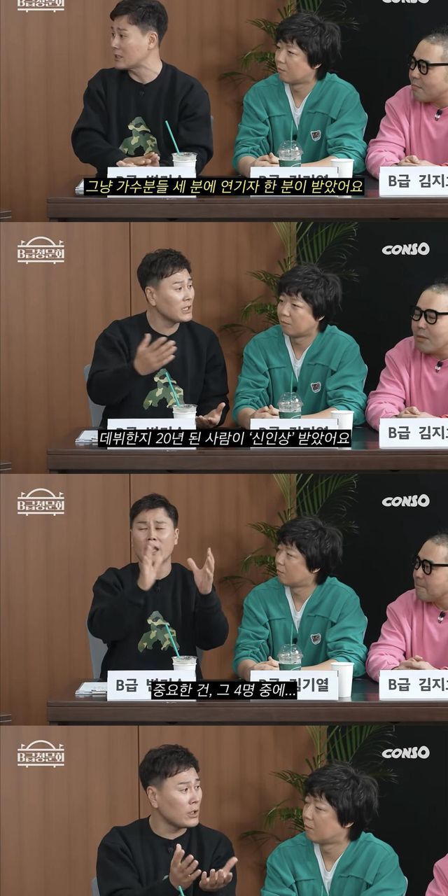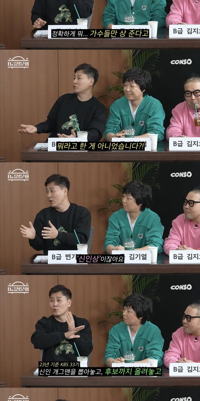 변기수가 지적한 신인상 부문은 쇼/버라이어티 신인상을 '더 시즌즈'의 지코, '싱크로유'의 카리나가 받았고, 리얼리티 신인상을 '살림하는 남자들'의 박서진, '신상출시 편스토랑'의 이상우가 거머쥐었다