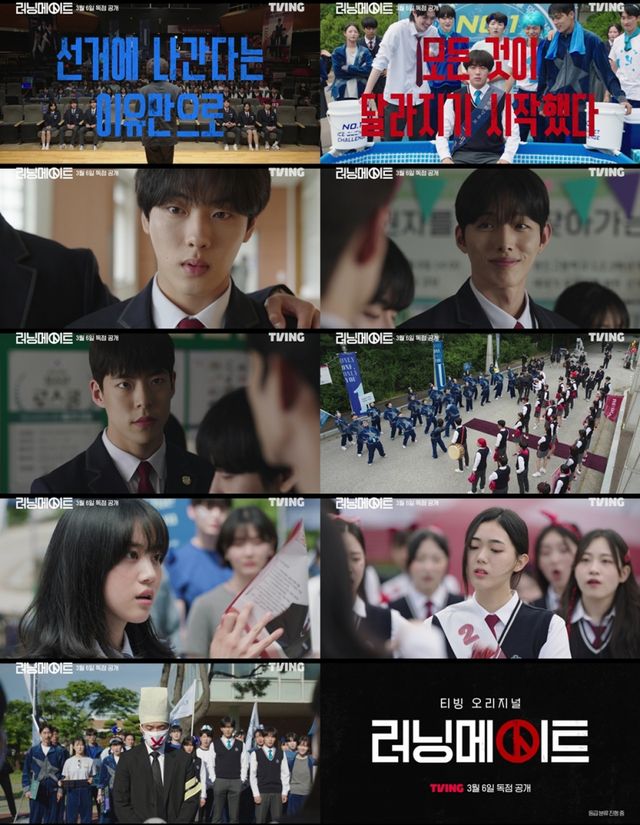 ‘러닝메이트’는 불의의 사건으로 전교생의 놀림감이 된 노세훈(윤현수 분)이 학생회장 선거의 부회장 후보로 지명되면서 온갖 권모술수를 헤치고 당선을 향해 달려가는 하이틴 명랑 정치 드라마다. 치열한 고등학교 학생회장 선거 속 청춘들의 끓어오르는 욕망과 첨예한 갈등, 그 속에서 빛나는 우정과 따뜻한 성장 스토리가 색다른 재미를 선사할 전망이다. 무엇보다 '기생충' 공동 각본가로 오스카 각본상을 수상한 한진원의 연출 데뷔작이라는 점에서 뜨거운 관심을 받고 있다. 특히 윤현수, 이정식, 최우성, 홍화연, 이봉준, 김지우 등 개성 넘치는 청춘 배우들이 일으킬 환상의 시너지는 드라마 팬들을 더욱 설레게 한다. 선거에 발을 들인 후 모든 것이 달라진 미쳐야 이기는 선거 전쟁 속 펼쳐지는 긴장감 넘치는 갈등 구조와 흥미로운 관계성은 이제껏 본 적 없는 본격 하이틴 명랑 정치 드라마의 탄생을 기대케 한다.