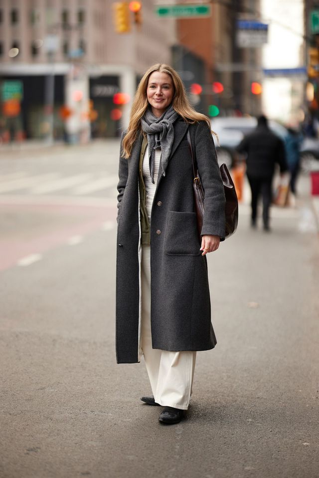 그레이 코트에는 화사한 화이트 톤 스타일링을 추천합니다. 여기에 연한 그레이 컬러의 니트 머플러를 무심히 둘러매기만 하면 순식간에 바쁜 맨해튼 도심을 누비는 뉴요커로 변신하는 건 시간 문제겠죠?