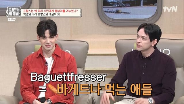다니엘은 라이벌 관계를 인정하며 “7번 정도 전쟁한 걸로 알고 있다. 예전엔 독일 사람들이 프랑스 사람들 보면서 ‘바게트나 먹는 애들’이라고 했다. 우리도 점령을 많이 당했다”고 했고, 규현은 “‘바게트나 먹던 애들이 우리나라에 쳐들어와?’ 이렇게 말했단 거냐”고 이해했다.
