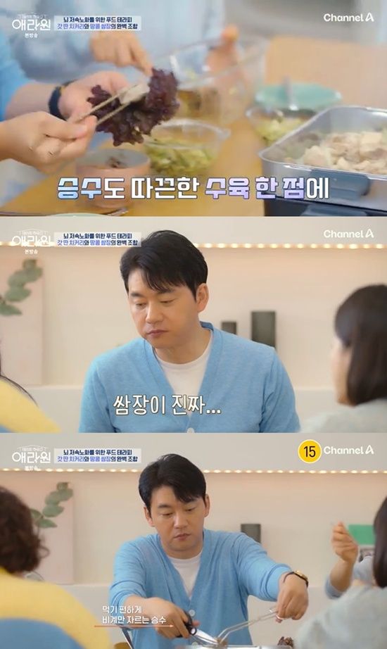 또한 식사 중 신애라가 비계를 분리하자, 이를 지켜보던 김승수는 직접 가위로 비계와 살코기를 분리하는 자상한 모습으로 모두를 감탄케 했다.