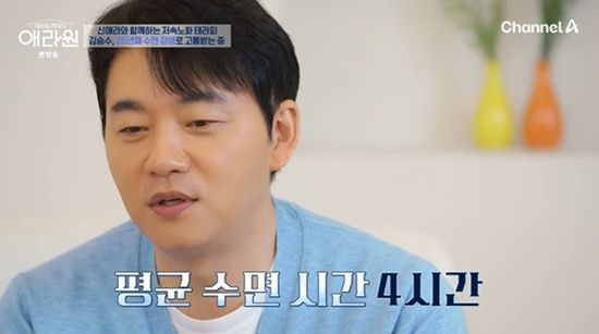 또 김승수는 "만성 수면장애가 있다"고 고백했다. 그는 "겪은 지 24~25년 된 것 같다. 일정한 수면 시간을 지키기가 어려웠다. 오랫동안 (불규칙한) 반복되다 보니 잠을 자는 평균 시간은 4시간 정도"라고 밝혀 놀라움을 안겼다.