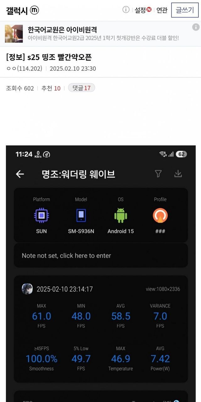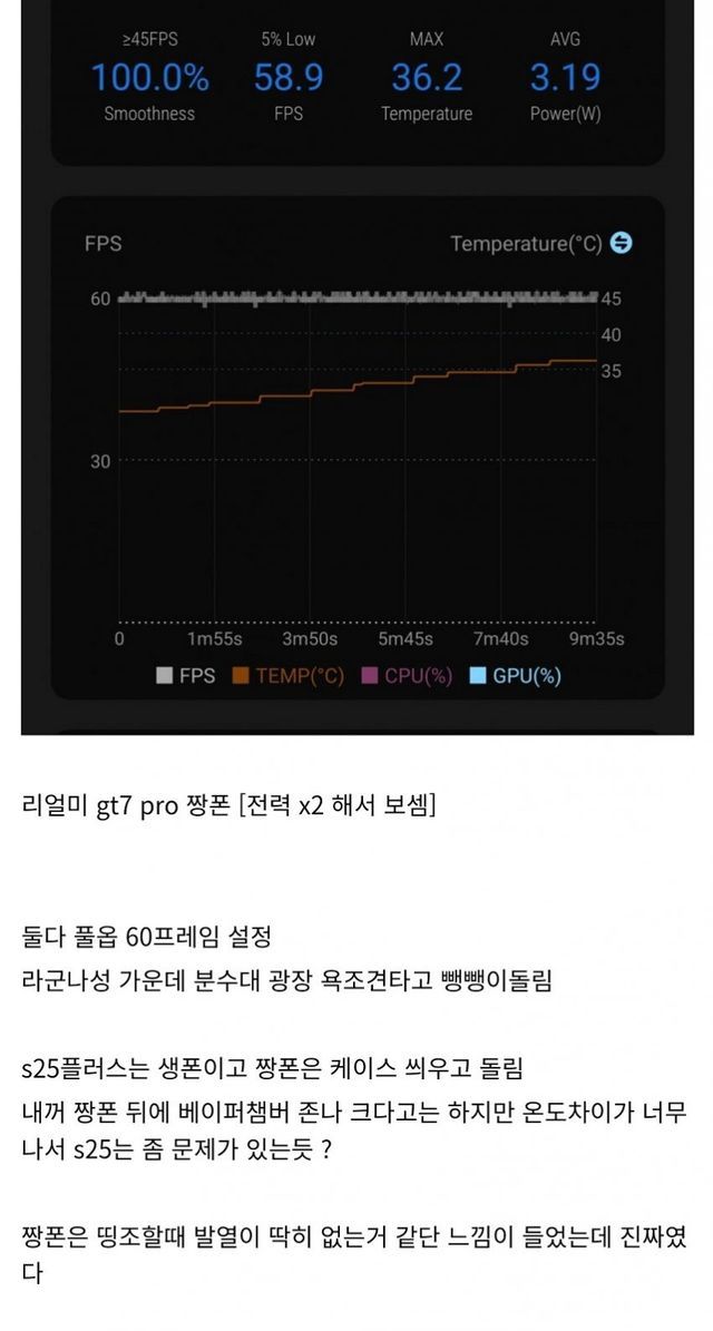 명조라는 게임하는데 갤럭시S25랑 중국폰이랑 비교해보니까 같은칩 사용하고도 갤럭시S25가 중국폰보다 전력을 30프로 더 많이 사용해버리네