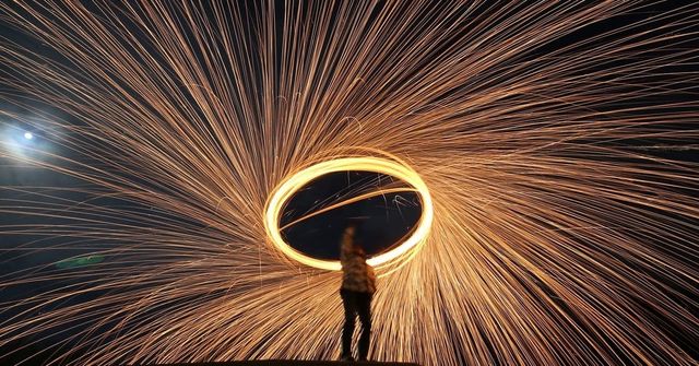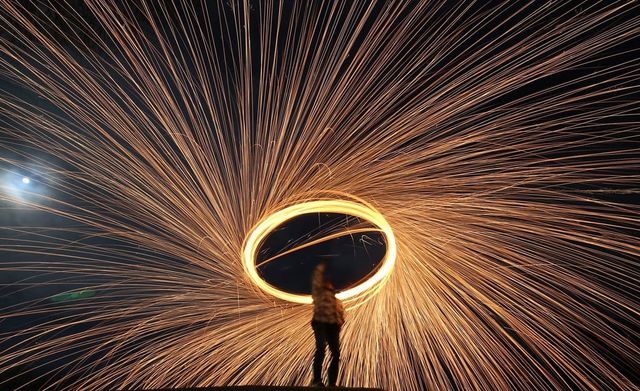 정월대보름에 보름달 아래서 쥐불놀이를 하는 시민의 모습 / 뉴스1