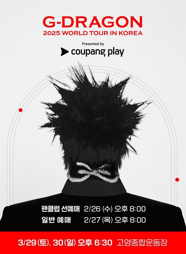 쿠팡플레이가 글로벌 아이콘 지드래곤(G-DRAGON)의 월드투어 한국 콘서트의 프레젠팅 파트너로 나선다고 밝혔다.