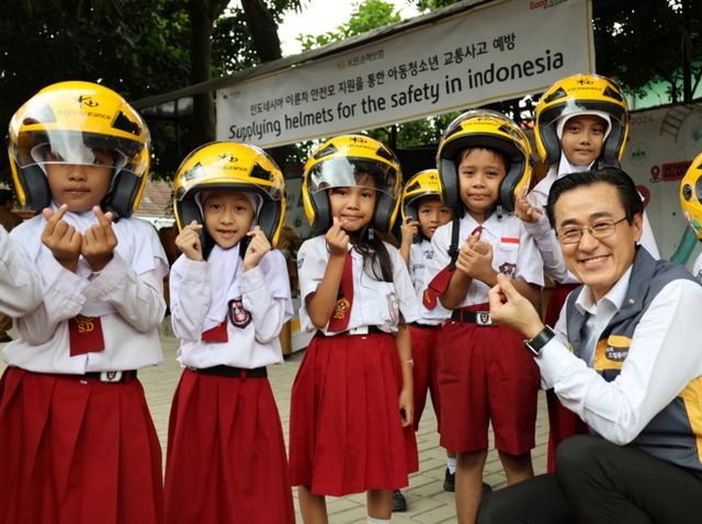 KB손해보험, 인니 취약계층 아동·청소년 '이륜차 안전모' 지원