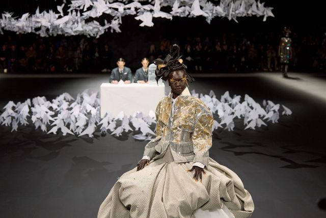 용기'라고 설명했습니다. 과장되고 비현실적인 실루엣, 아티스트 뷔욕의 앨범 재킷이 떠오르는 동화적인 메이크업(역시 팻 맥그라스!), 동화책 속 마녀가 신었을 법한 슈즈까지. 모든 것들이 패션'쇼'라는 단어 그 자체인 황홀경 아니었을까 싶네요.