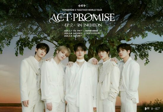 투모로우바이투게더(수빈, 연준, 범규, 태현, 휴닝카이)가 오는 3월 7일부터 9일 사흘간 인천 인스파이어 아레나에서 개최하는 월드 투어 ‘TOMORROW X TOGETHER WORLD TOUR <ACT : PROMISE> - EP .2’ 공연 티켓이 예매 시작 후 빠르게 전석 매진됐다.