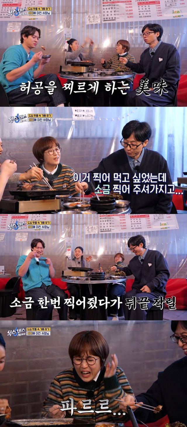 소금 하나로 시작된 유재석의 뒤끝에 송은이는 귀를 막으면서 "꿈에 나온다"는 현실 반응으로 웃음을 더했고, 유재석은 시청자들에게 "죄송합니다. 오해 없으시길 바랄게요~"라고 너스레를 떨었다.