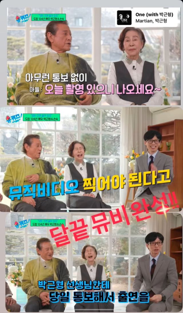 박근형은 지난달 29일 tvN ‘유 퀴즈 온 더 블록’(‘유퀴즈’) 출연 당시 이번 뮤직비디오 촬영 에피소드를 언급하기도 했다. 당시 그는 “아들이 아무런 사전 통보 없이 ‘오늘 촬영 있으니 나오세요’라고 하더라”며 마션(윤상훈)의 남다른 아버지 활용법(?)을 폭로해 웃음을 자아내기도 했다.