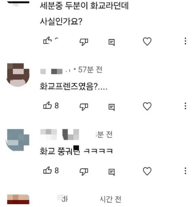 최근 일부 누리꾼들은 이낙준의 유튜브 채널을 비롯한 온라인 상에서 “세분 중 두분이 화교라던데 사실이냐” “화교 프렌즈였냐” 등의 댓글을 달며 근거 없는 허위사실을 퍼뜨렸다.