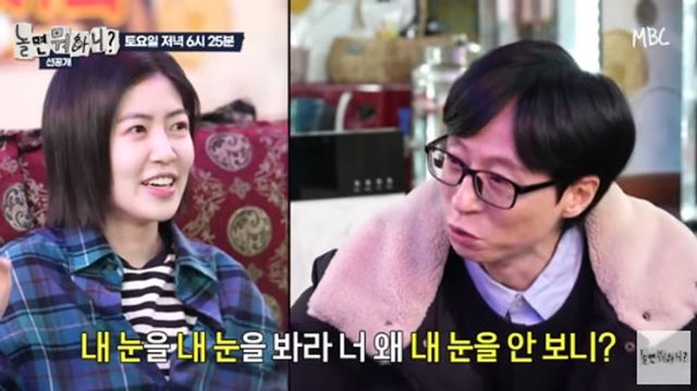 당시 영상을 보던 이이경은 “재석이 형도 표정이 표독스럽네”라고 몰아갔고 심은경 역시 “정말 깜짝 놀랐다”라고 털어놨다. 이에 이이경은 “그때 재석이 형이 어떤 말투로 뛰라고 했나?”라는 질문으로 몰아가기에 나섰고 유재석은 “은경아, 네가 잘 이야기 해줘야 한다”라고 강조했다. 이에 심은경은 “되게 상냥하게 이야기 해주셔서…”라고 웃었다. 이이경은 “그 이후로 예능을 안 하신 것 아니에요?”라고 또다시 질문에 나섰고 심은경은 “안 했다”라고 대답했다. “형이 하도 뛰라고 해서 그런 것”이라고 다시 몰아가기에 나선 이이경의 말에 유재석은 심은경을 향해 “나 때문이야? 너 왜 내 눈을 안 보니?”라고 질문했고 심은경은 눈을 부릅뜬 모습으로 “아니, 저 보잖아요”라고 반응해 폭소를 자아냈다. 이에 유재석은 “‘런닝맨’ 때보다 입담이 좋아졌다”라고 칭찬했다.