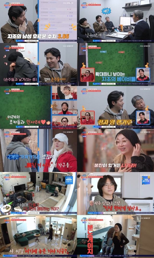 15일 방송된 MBC에브리원·MBN ‘다 컸는데 안 나가요’ 5회에서는 생각지도 못한 순간에 남성 호르몬 검사를 받게 된 지조와 한강뷰 새집으로 이사 후에도 박해미와 끊임없이 옥신각신하는 황성재의 모습이 그려졌다.