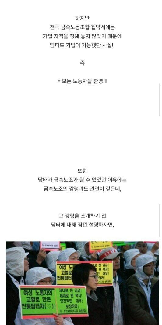 담터(율무차 회사) 노조가 금속노조 소속이 된 계기와 이유