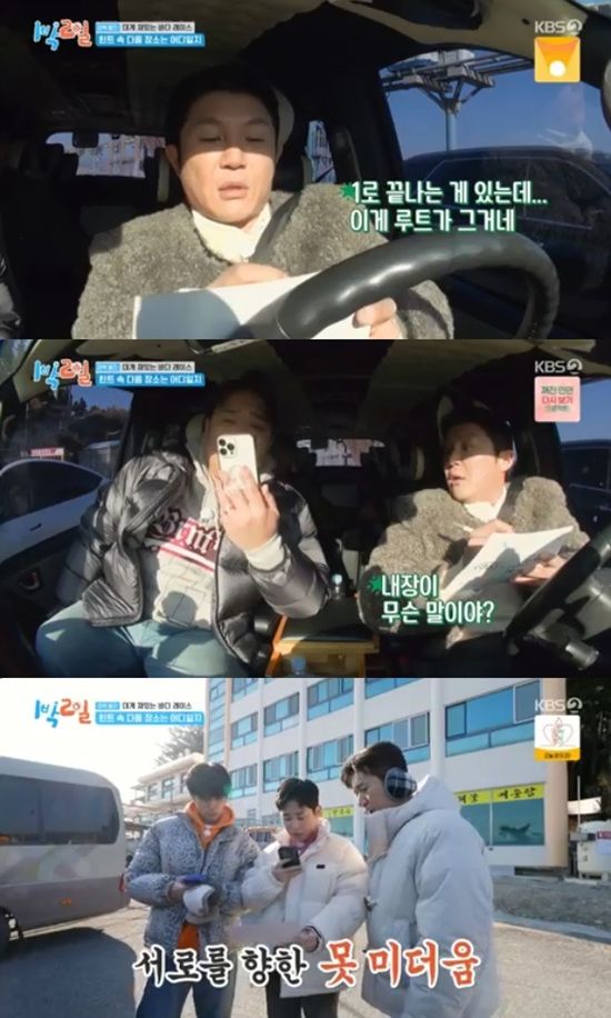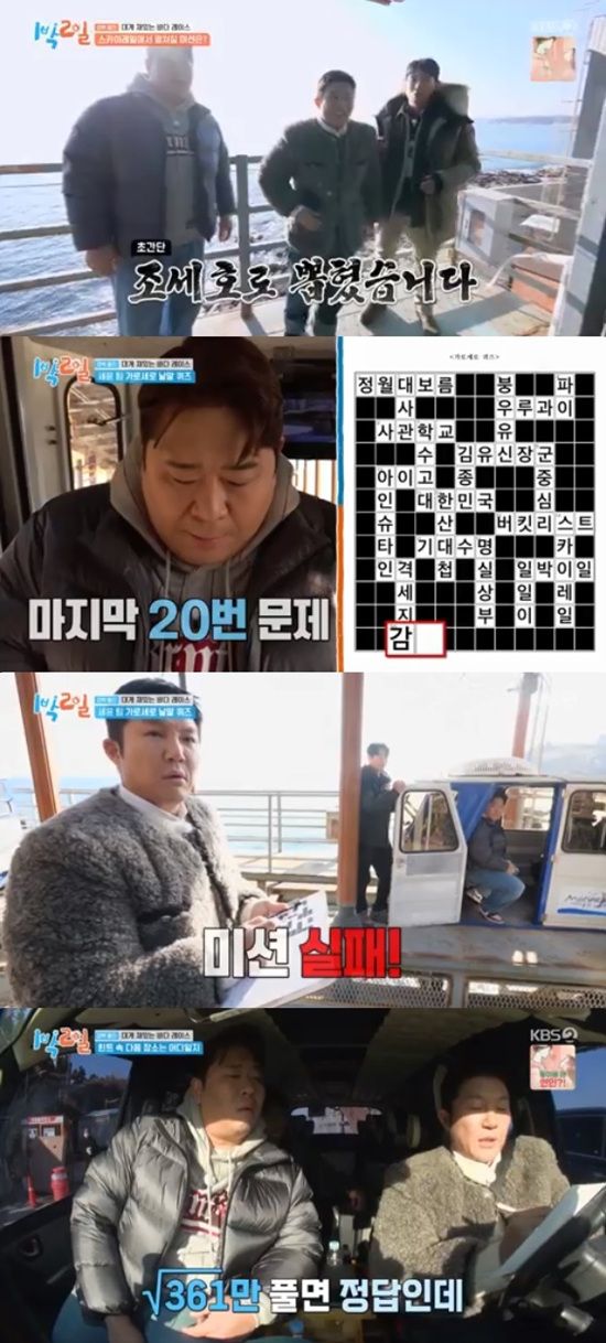 김종민 팀은 망양정으로 향해 사자성어, 국기, 절대음감 퀴즈 3종 미션을 시작했다. 주종현PD는 중간에 틀릴 경우 5분 후 재도전할 수 있다고 했다.