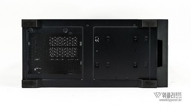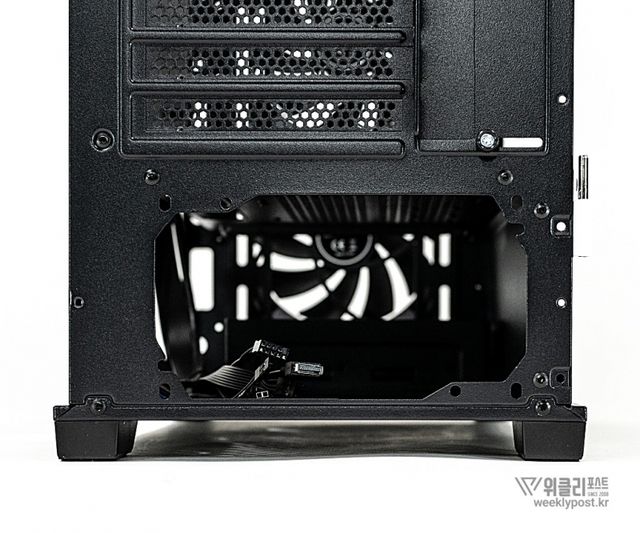 하단부에는 외부 먼지와 이물질 유입을 최소화할 수 있도록 하부 먼지 필터가 포함됐다. 케이스 전체가 공기 흐름을 극대화하는 메쉬 구조를 갖추고 있어 먼지 유입이 쉬운 구조지만, 이를 보완하기 위해 사면에 먼지 필터를 배치해 유지관리가 용이하다.