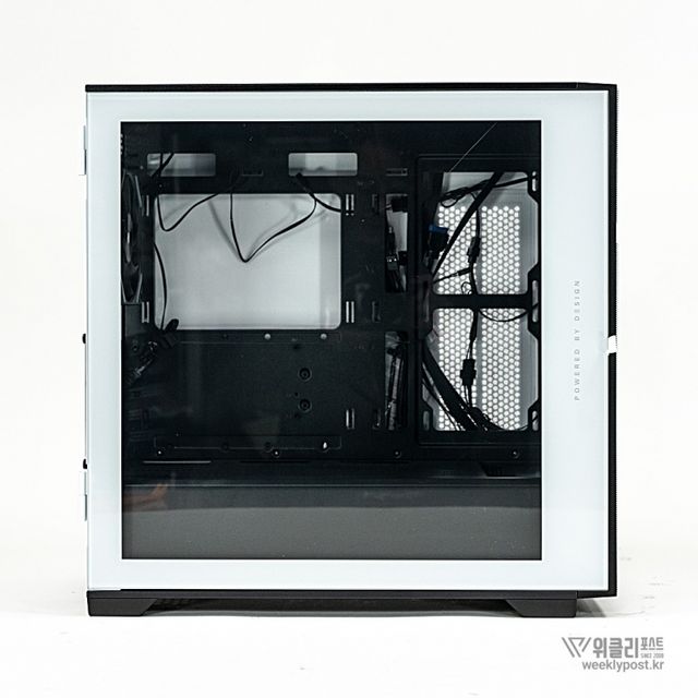 위즈맥스 ML-360은 좌측면 전체를 덮는 대형 강화유리 패널을 적용해 개방감을 극대화했다. 일반 케이스와 달리 강화유리가 전면 패널까지 자연스럽게 이어지는 디자인을 채택해 넓은 시야각을 제공하며, 내부 부품과 LED 효과를 더욱 선명하게 감상할 수 있다. 강화유리는 내구성이 뛰어나며, 열 저항성이 높아 안정성과 효율성을 동시에 확보했다.