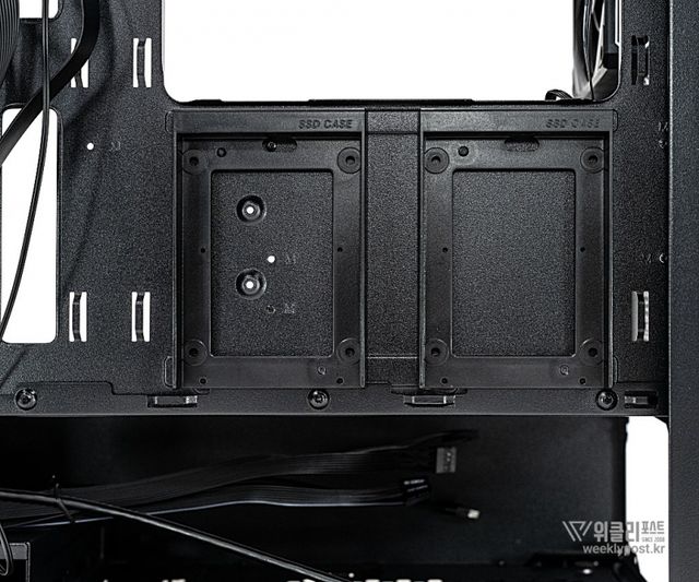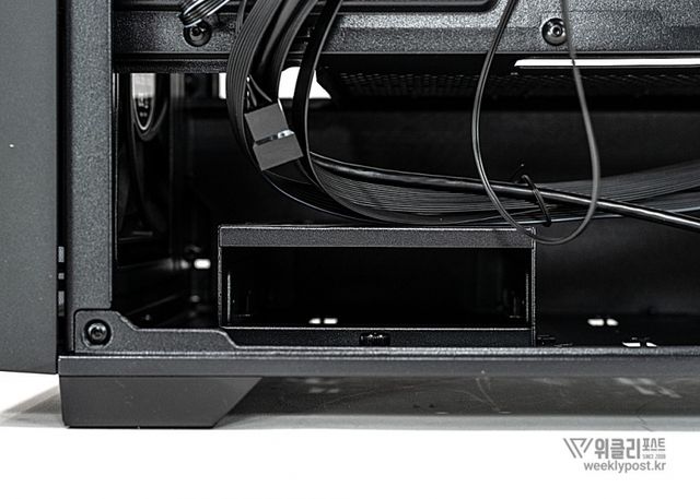 수랭 쿨러도 폭넓게 지원한다. 전면과 상단에는 최대 360mm 수랭 라디에이터를 장착할 수 있으며, 최대 170mm 높이의 고성능 공랭 쿨러도 지원해 다양한 조합이 가능하다. 작은 미니타워 케이스임에도 고성능 그래픽 카드와 발열이 높은 부품을 사용할 수 있도록 설계되어 사용자 선택의 폭을 크게 넓혀준다. 저장 장치를 위한 스토리지 공간도 실용적으로 구성됐다. 최대 2개의 3.5인치 HDD와 3개의 2.5인치 SSD를 장착할 수 있으며, 원터치 방식의 2.5인치 드라이브 브라켓 2개를 기본 제공해 손쉽게 장착하고 관리할 수 있다.