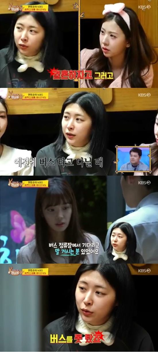 홍주연은 버스로 출퇴근을 하던 시절 스토커가 정류장에 있어서 버스를 못 탔었다고 밝혀 모두를 놀라게 했다.