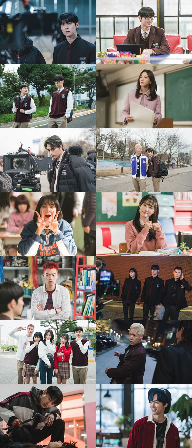 여기에 ‘연서 3철’의 우두머리로 피한울의 호위무사를 자처했지만, 스터디그룹의 도움으로 뭉클한 변화를 맞은 김순철 역의 주연우, 비밀을 간직한 채 스터디그룹 주변을 맴도는 박건엽 역의 홍민기, 피한울의 최측근이자 장난기 어린 말투에 숨겨진 악랄함으로 긴장감을 높인 마민환 역의 백서후까지 얽히고설킨 유성공고 서열 싸움을 책임진 배우들이 극의 흥미를 높였다. 촬영이 쉬는 시간 포착된 화기애애한 단체 사진은 보는 이들을 미소 짓게 한다.