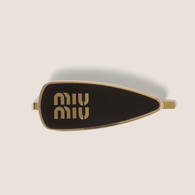 미우미우의 아이코닉한 시그니처 로고가 더해진 애나멜 메탈 헤어 클립. 총 일곱 가지 컬러로 출시되었으며, 혜리가 선택한 블랙 컬러는 시크한 매력이 돋보입니다. 캐주얼한 데일리 룩부터 포멀한 스타일까지 찰떡같이 어울리는 활용도 만점 아이템이죠. 머리에 살짝 꽂아주기만 해도 세련된 무드가 완성됩니다.