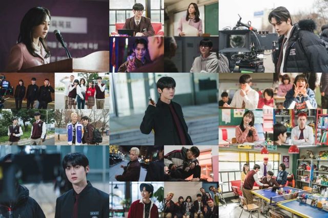 여기에 '연서 3철' 우두머리로 피한울의 호위무사를 자처했지만, 스터디그룹 도움으로 뭉클한 변화를 맞은 '김순철' 역의 주연우, 비밀을 간직한 채 스터디그룹 주변을 맴도는 '박건엽' 역의 홍민기, 피한울의 최측근이자 장난기 어린 말투에 숨겨진 악랄함으로 긴장감을 높인 ‘마민환’ 역의 백서후까지 얽히고설킨 유성공고 서열 싸움을 책임진 배우들이 극의 흥미를 높였다. 촬영이 쉬는 시간 포착된 화기애애한 단체 사진은 보는 이들을 미소 짓게 한다.