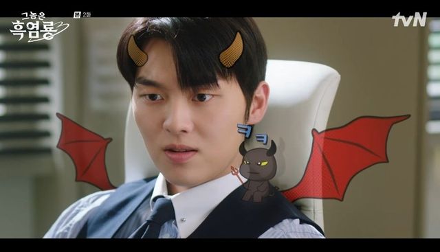 18일 방송된 tvN 새 월화드라마 ‘그놈은 흑염룡’ 2회에는 백수정(문가영 분)을 견제하는 반주연(최현욱)의 모습이 그려졌다.