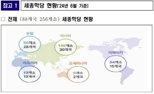 문체부는 “앞으로 우수 교원 확보를 위해 교원 처우를 지속 개선해 나갈 계획”이라며 “교원들의 경험을 토대로 세계 88개국 256개소 세종학당이 나아가야 할 방향에 대해서도 의견을 나눈다”고 말했다.