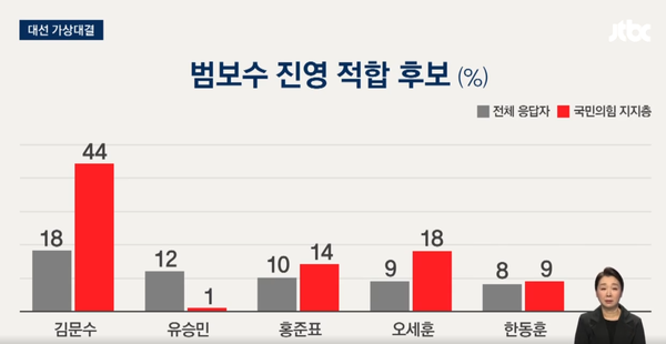 범보수 차기 대선 주자, 김문수 18% 유승민 12% 홍준표 10%
