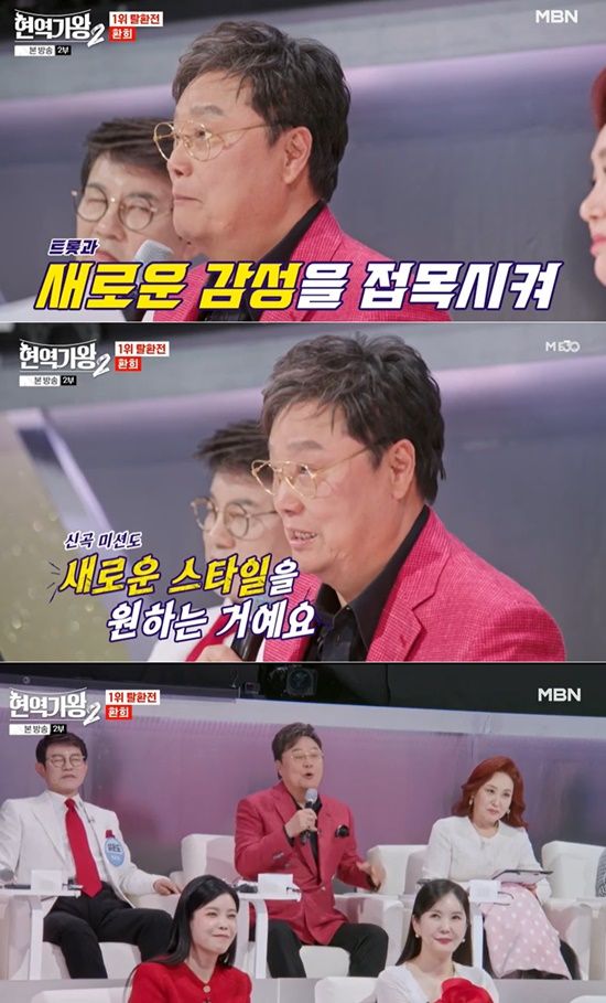18일 방송된 MBN '현역가왕2'에서는 10명의 현역이 최후의 결승전에 오른 가운데, 결승전 1라운드 '신곡 미션-1위 탈환전'이 진행됐다.
