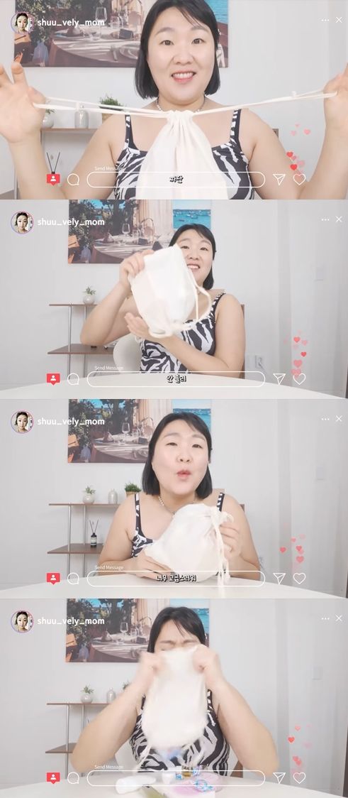 그러나 순수한 소통을 강조한 것과 달리 "파우치 너무 귀엽지 않냐. 이게 100만 원 이상 구매하신 쑥떡이 분들께 무료로 나가는 거다"라고 은근슬쩍 공구를 유도했다.
