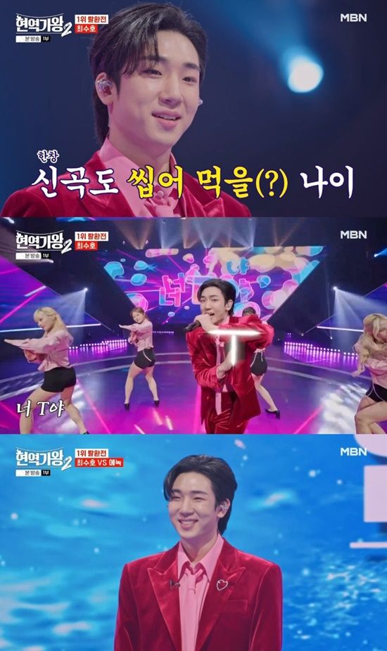 최수호는 지난 18일 오후 방송된 MBN '현역가왕2'에서 막내의 패기를 담은 유쾌 발랄한 신곡 무대로 결승 1차전 4위를 기록했다.