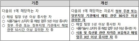 또한, 식품·축산물 관련 자격증을 보유하고 해썹 업무 3년 이상 한 자도 강의 경력이 50시간 이상이라면 강사로 활동할 수 있도록 요건을 추가했다.
