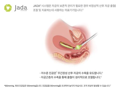 자궁내 음압지혈술에 사용되는 제이다는 자궁의 생리적인 수축을 유도하여 비정상적인 산후 자궁 출혈의 조절 및 치료에 도움을 준다.