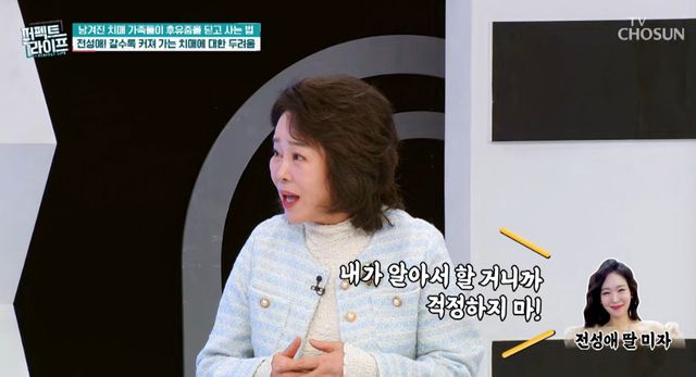 19일 방송된 TV조선 ‘퍼펙트 라이프’에는 장광의 아내이자 배우 전성애가 출연해 다양한 이야기를 전했다.