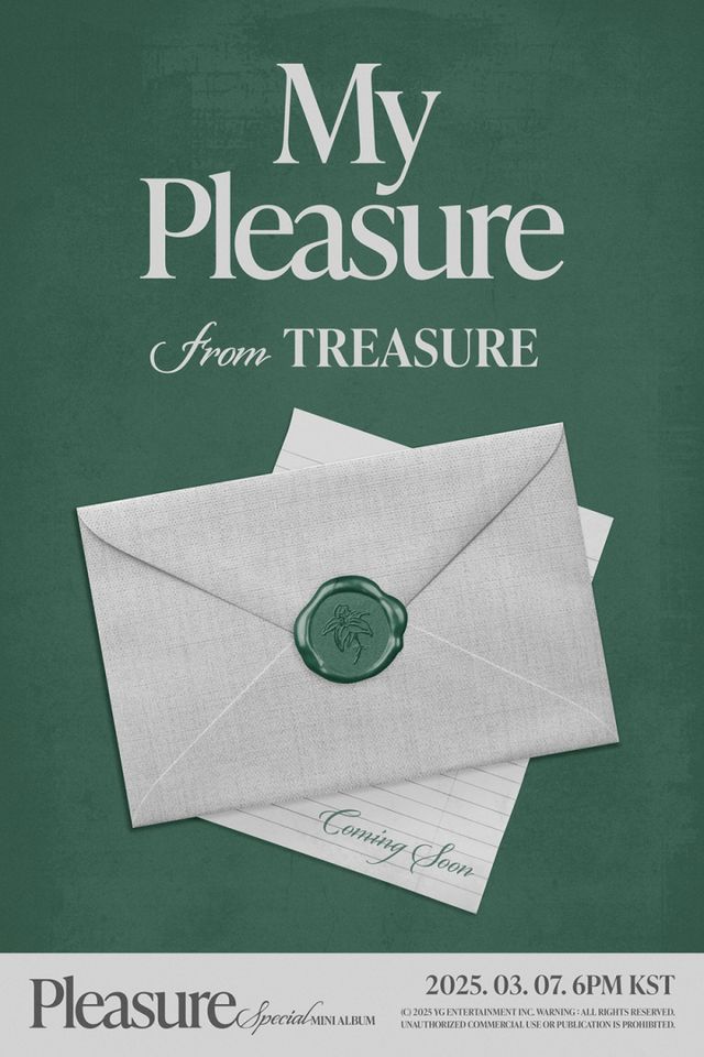 YG엔터테인먼트는 21일 공식 SNS에 ‘마이 플레저 프롬 트레저’ 포스터를 공개했다. 포근한 봄날을 연상시키는 초록빛 배경 위에 팬들에게 건네는 듯한 초대장이 놓여있어 궁금증을 자극한다.
